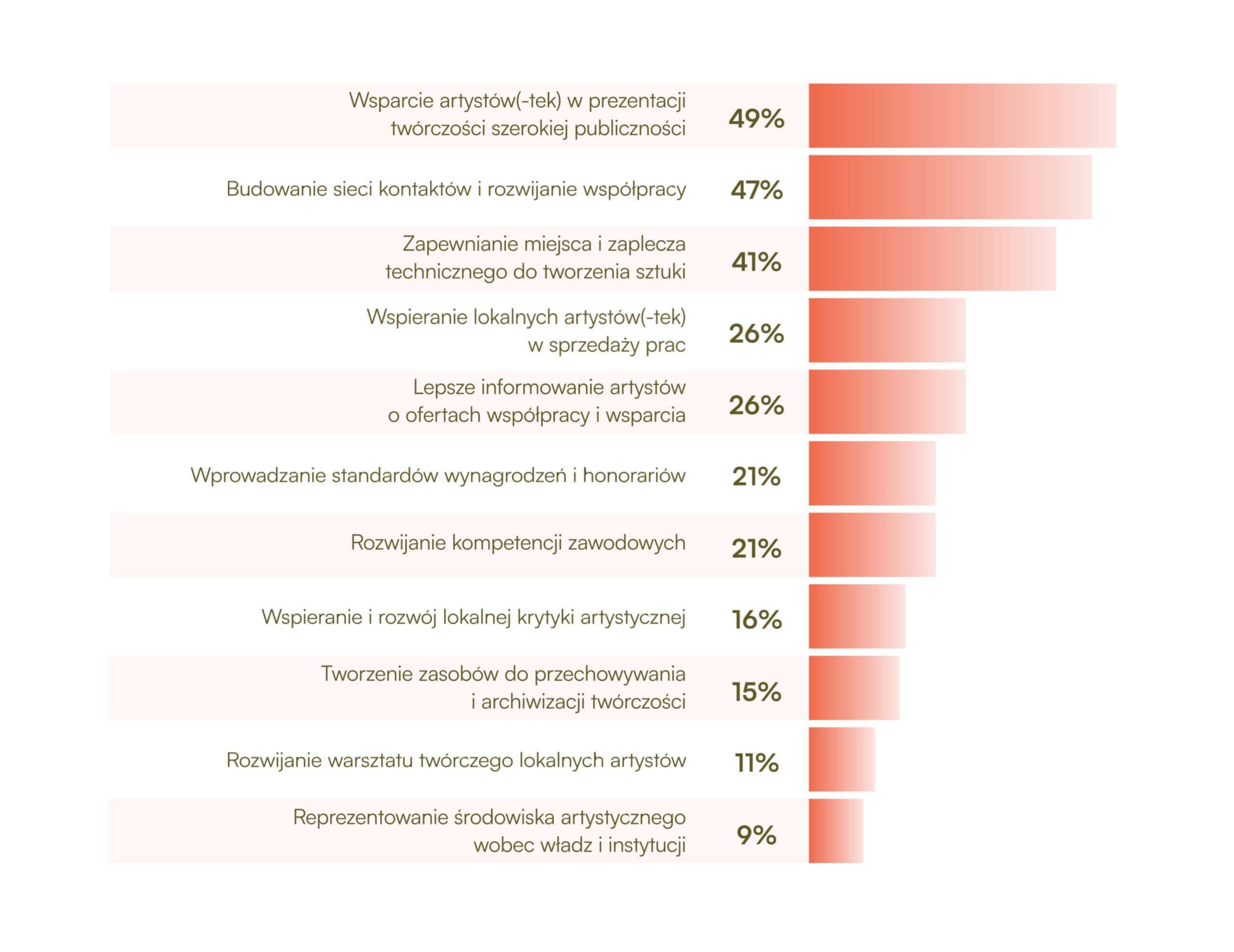 Wykres: Preferencje artystów i artystek dotyczące obszarów wsparcia przez miejskie instytucje kultury